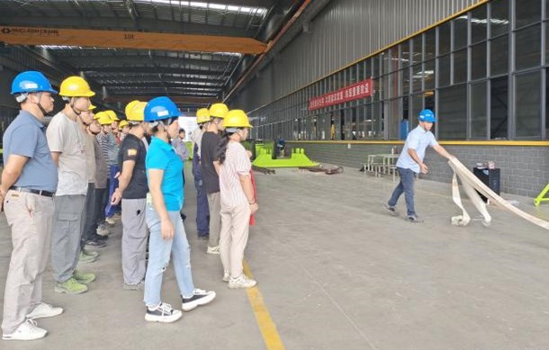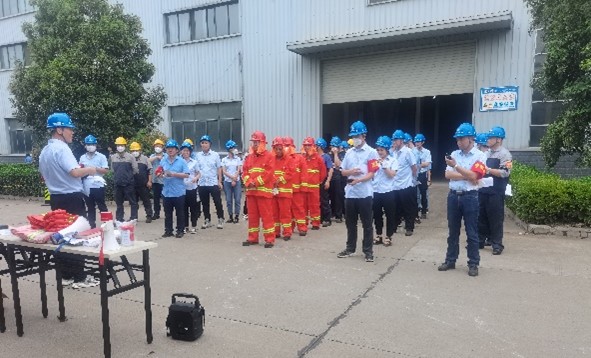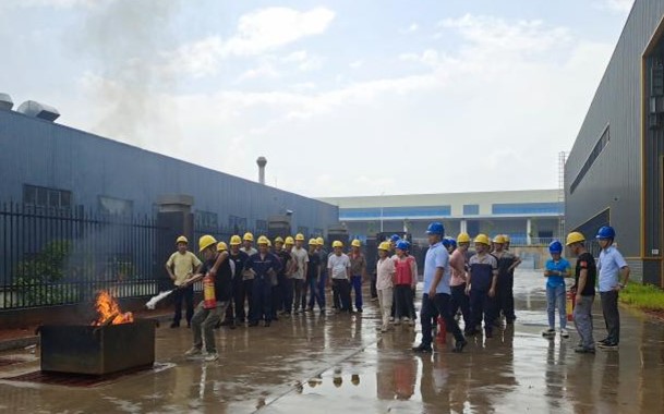湖南中钢智能装备有限公司按照预定方案进行“消防应急演练”,活动包括:“消防器材使用介绍”“实际操作灭火器”、“涂装车间模拟火情”。